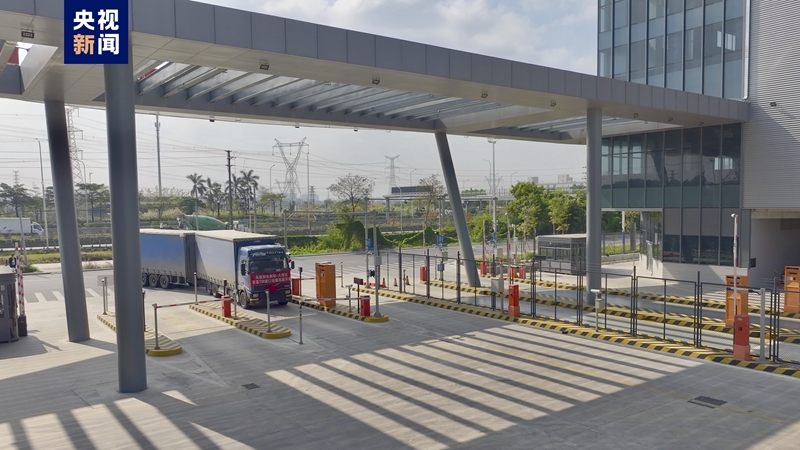 來自烏茲別克斯坦的大灣區首輛跨境公路運輸進境車輛正在通過海關監管場所卡口